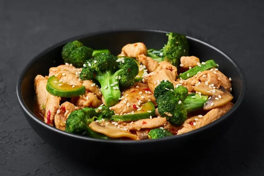 Crispy chicken or beef sauteed with orange peel and spicy brown sauce, and garnished with steamed broccoli.