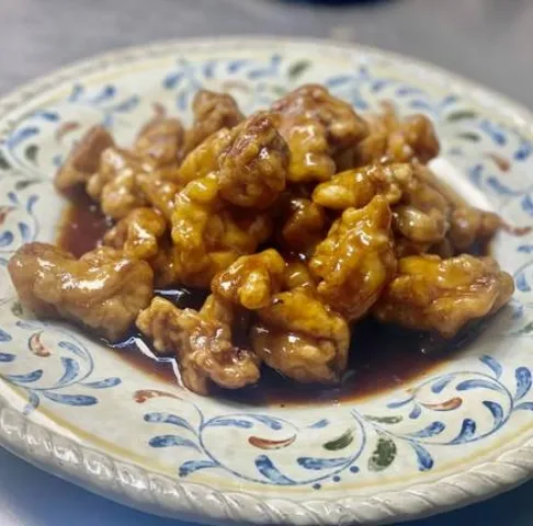 One of the best know Chinese dishes boneless chicken chunks lightly fried until golden brown, then sauteed with chef's specially prepared crystal hot sweet brown sauce.