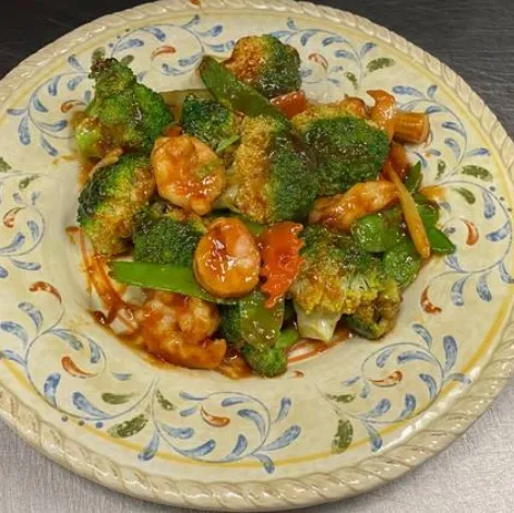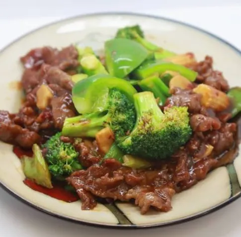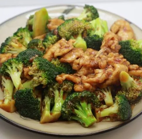 Crispy chicken or beef sauteed with orange peel and spicy brown sauce, and garnished with steamed broccoli.