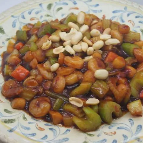 Tender shrimp and diced chicken sauteed with water chestnut and green onion in chef's special sauce