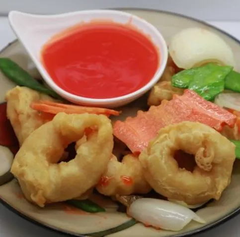 Jumbo shrimp, tender chicken and juicy pork with sweet and sour sauce.